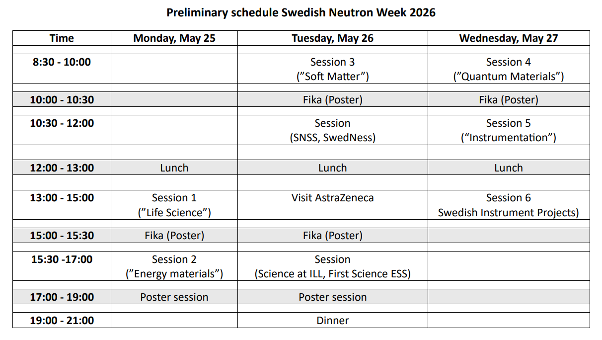 Program The conference program will be updated closer to the event. In any case, the program will start on Monday after lunch and end on Wednesday after lunch. Som satellite meeting are scheduled for Wednesday afternoon.